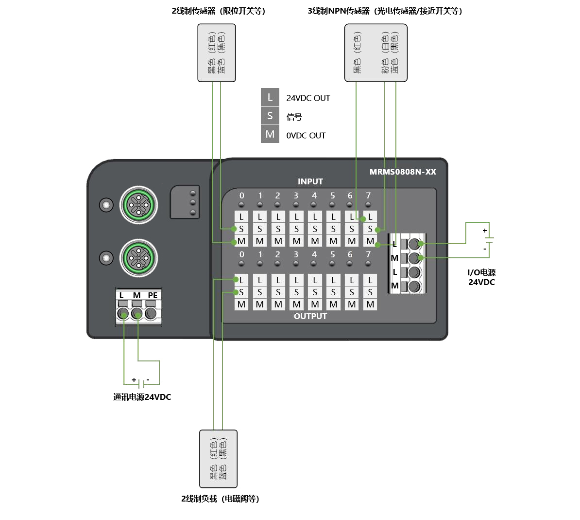 電源接口:模塊供電:3P歐式彈簧端子;負載供電:4P歐式彈簧端子