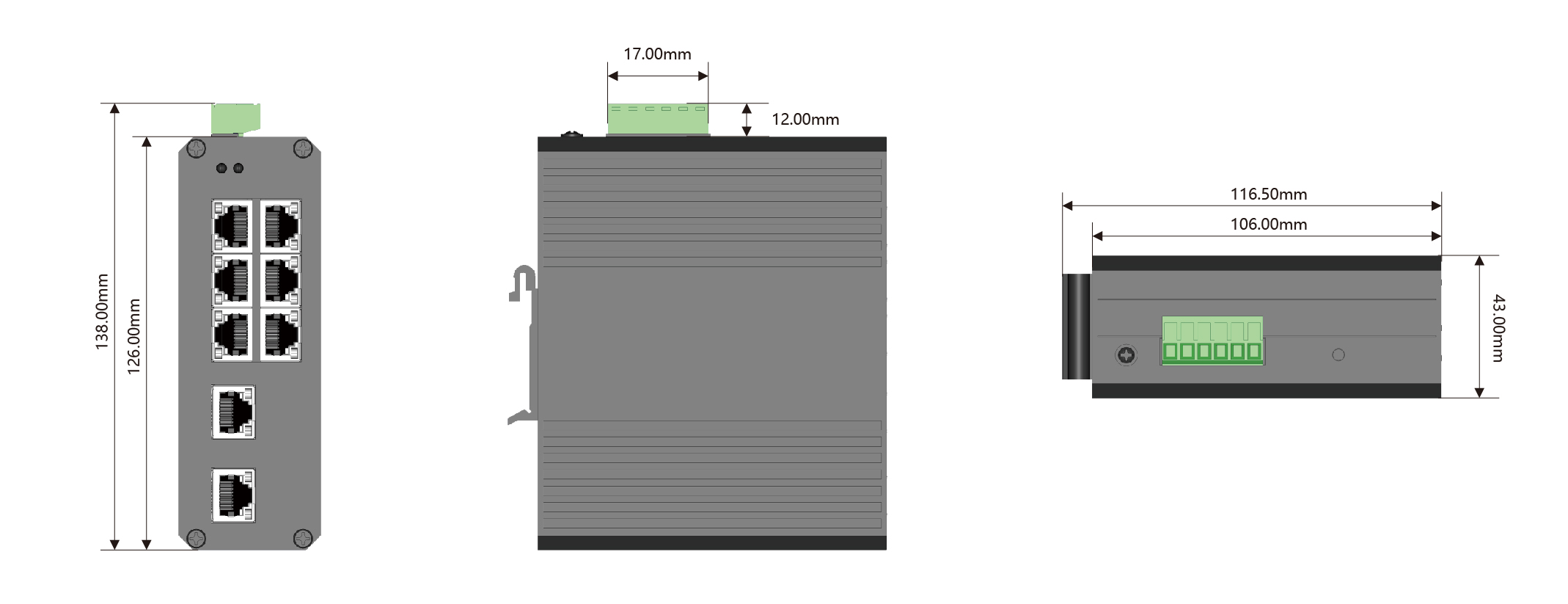 非管理型工業交換機,5電口,千兆,12V~52VDC,IP50,金屬外殼,DIN35導軌安裝
